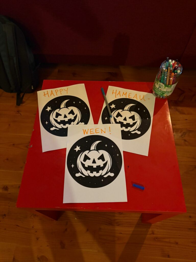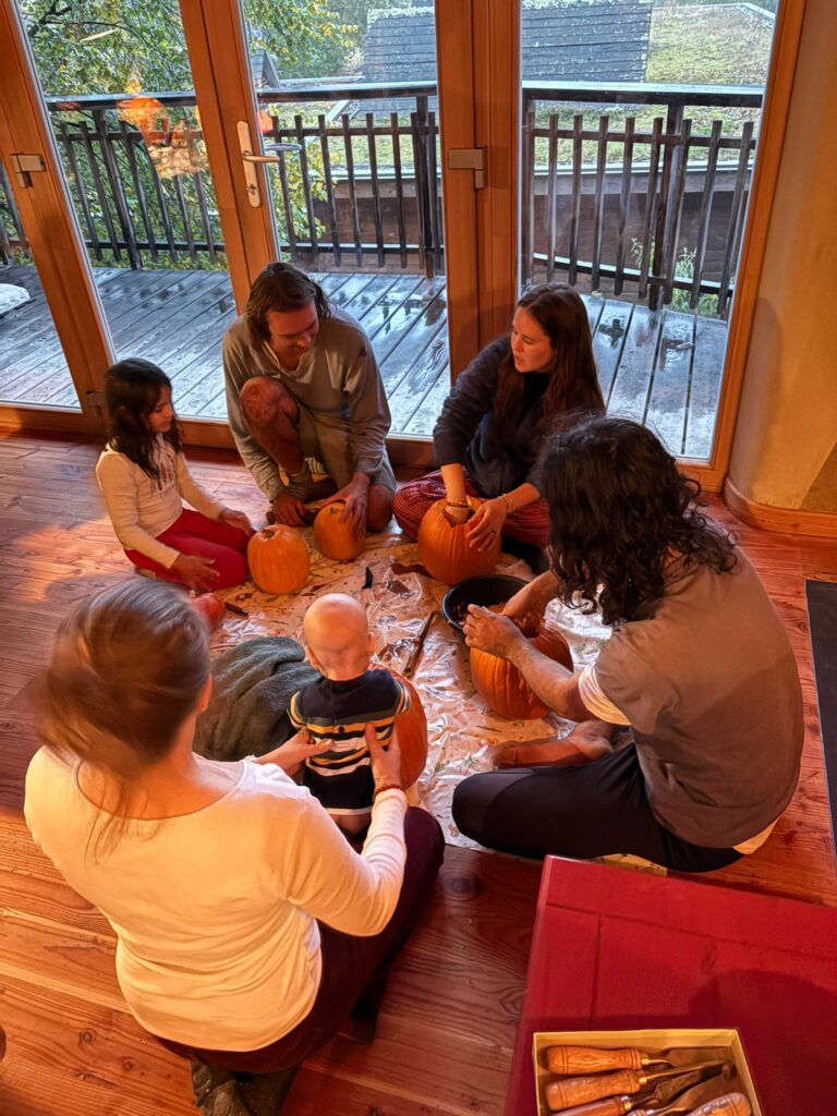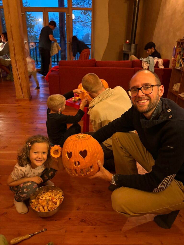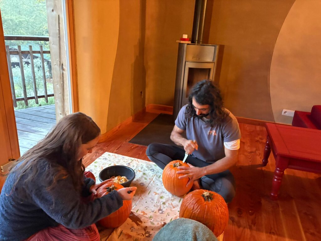 Cette année une famille franco-américaine qui a séjourné quelques mois dans le Hameau a organisé une merveilleuse fête d’Halloween. Ils nous ont montré comment sculpter les citrouilles d’Halloween et nous a raconté les origines irlandaises et celtiques de cette tradition. Nous avons fait une promenade dans la forêt au crépuscule et enfin, nous avons fait la tournée des maisons pour récolter des friandises en disant “trick or treat” !