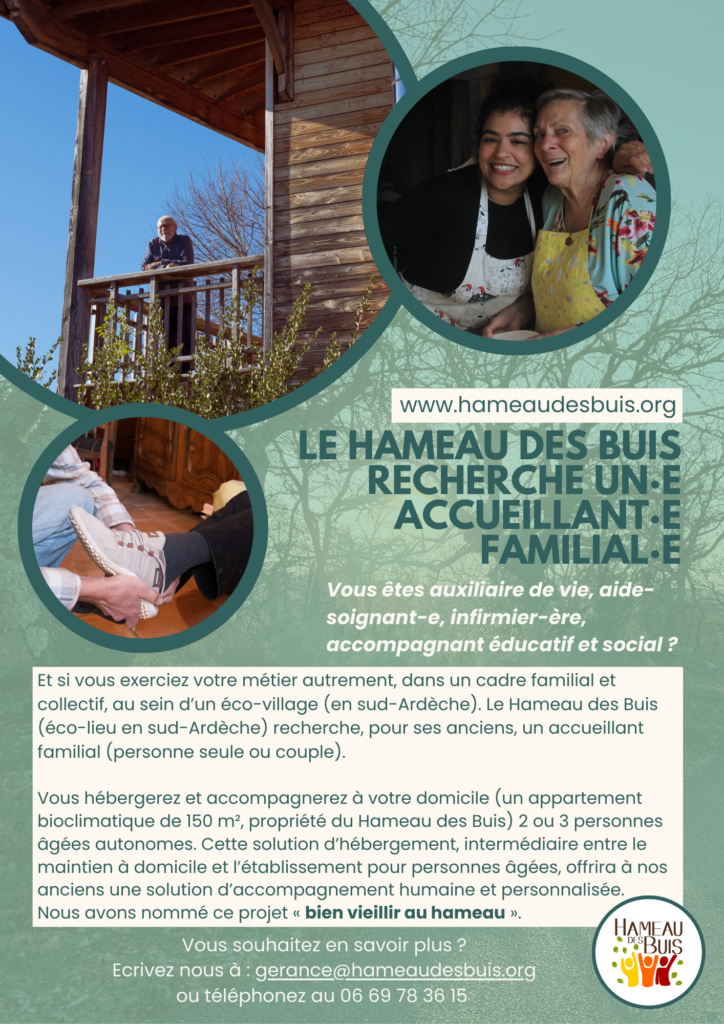 Le Hameau des buis recherche, pour ses anciens, un accueillant familial (personne seule ou couple).